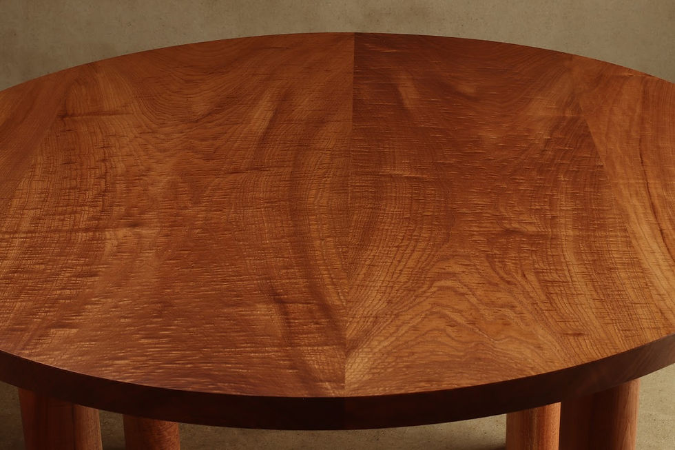 特注家具 玄圃(けんぽ)梨(なし)杢厚板の丸テーブル 1300φ×H700㎜